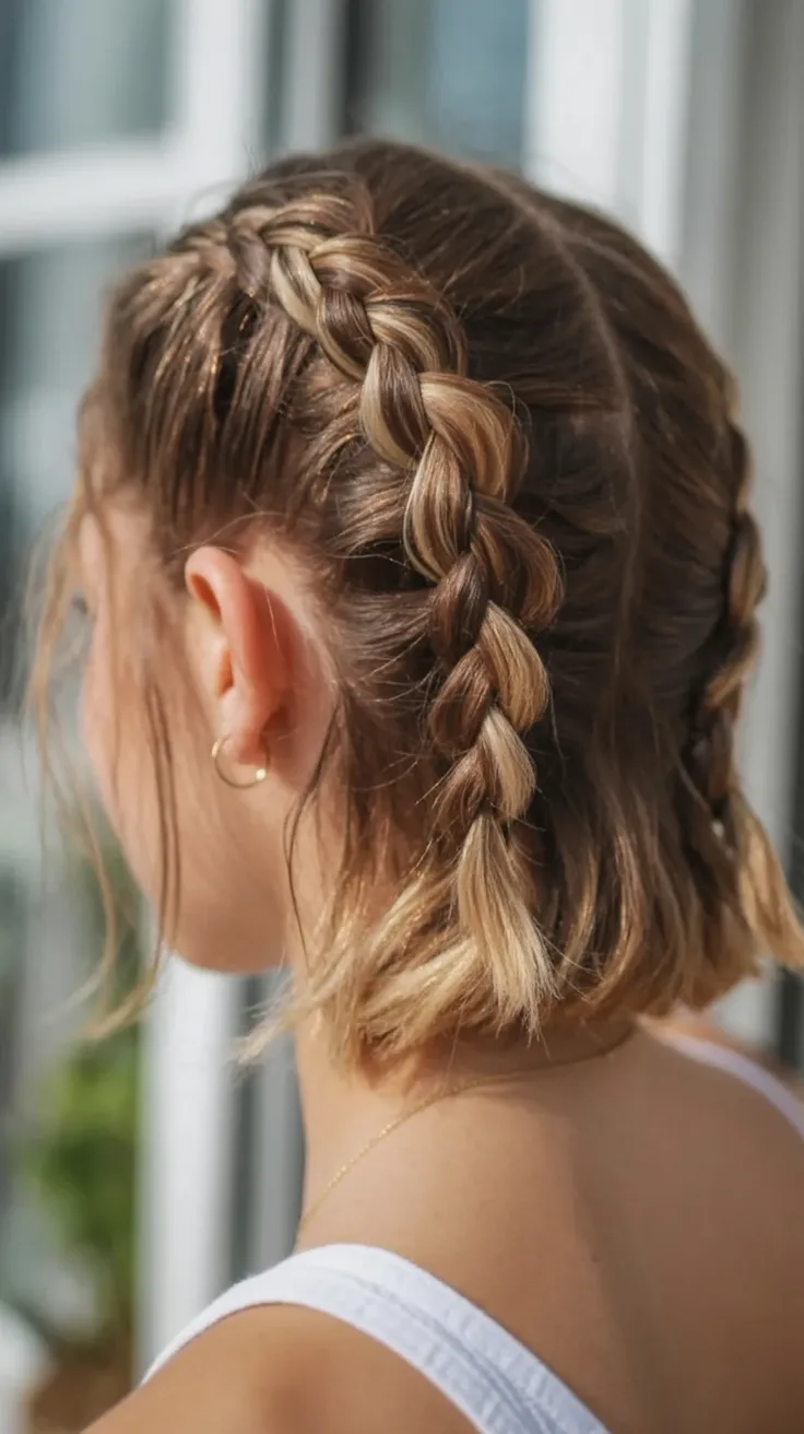 This style is especially good for straight or lightly textured hair that is neck length or just above the shoulders. If you want something easy for busy mornings, this is one of those Quick ideas that stays neat and practical once it is secured well. A little styling cream or light gel helps the braids look polished, and it is a great option for women, for teens, or even for school days when you want hair off the face. If you have fine hair, gently loosen the braid edges for fullness. It also has that easy appeal for kids because it looks detailed, but the concept is actually Simple once you get the hang of the sections.