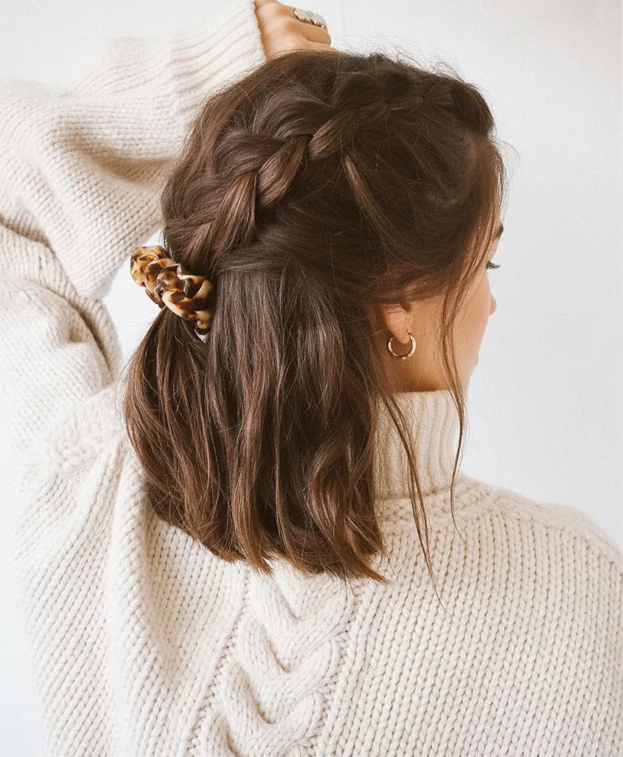 This hairstyle has a cozy, everyday prettiness that is very easy to love. The braid softens the top section, while the clip at the back keeps it relaxed and practical instead of overly polished. It feels like one of those styles you could actually wear in real life again and again, which honestly makes it more appealing than something too perfect. There is a softness here that works beautifully with a short cut. It adds detail without taking over, and that makes the whole look feel approachable, warm, and quietly stylish. It is cute in a way that feels grown-up rather than overly sweet, which is not always easy to find.