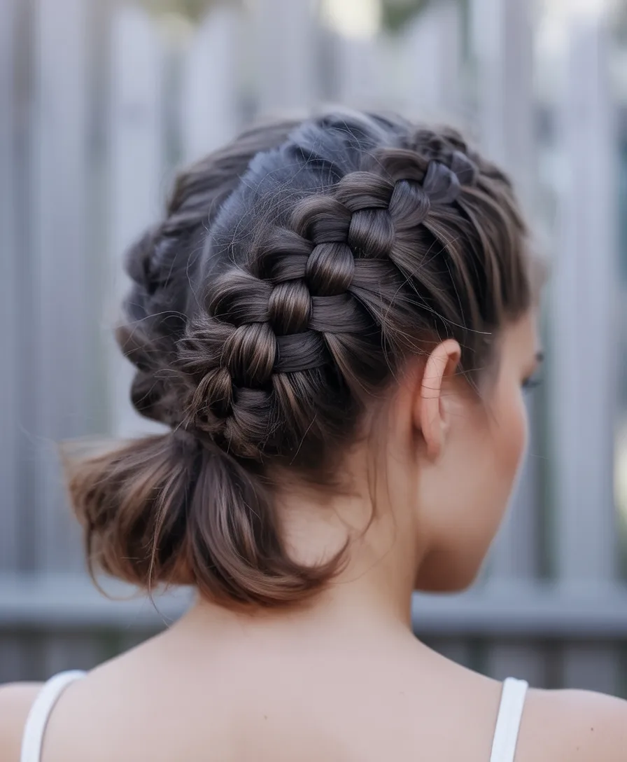 This is a great option for straight or slightly textured hair that is just long enough to gather at the nape. If you want a style for school, casual weekends, or even for teens who like something cute but secure, this one checks a lot of boxes. The braids help hold shorter layers in place, while the low buns make the whole shape feel balanced. A little smoothing cream or styling wax can help keep flyaways under control, and it is surprisingly easy once you section the hair cleanly. For women who want something Simple but more interesting than a basic ponytail, this has a fun, wearable finish.