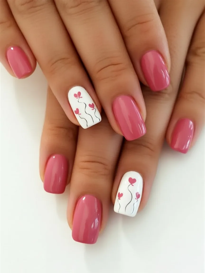 4. Simple Pink Nails with Heart Art