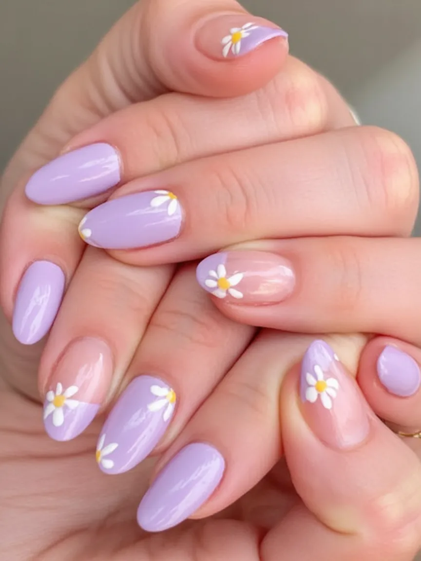 11. Lavender Daisy Almond Nails