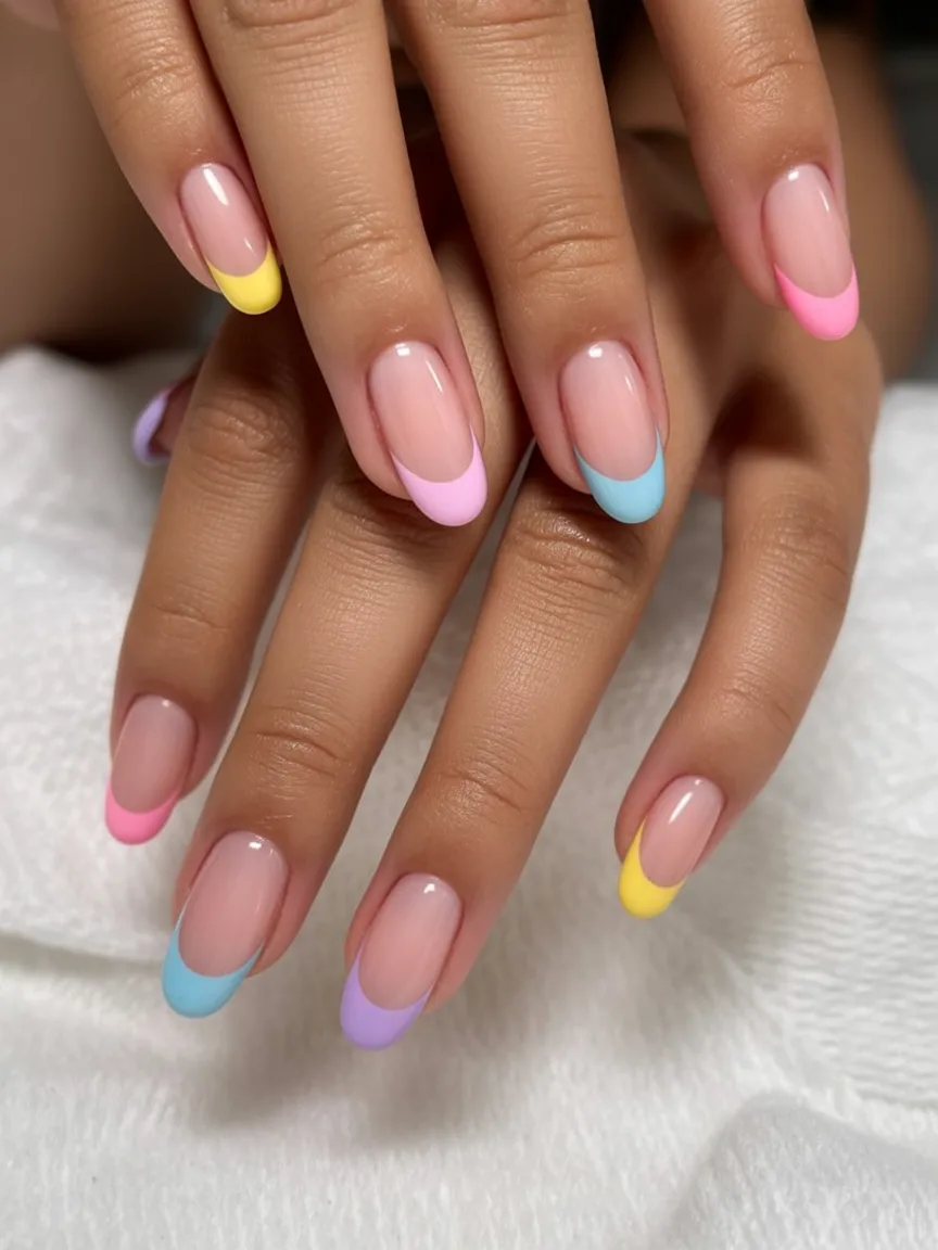 10. Colorful Pastel French Almond Nails
