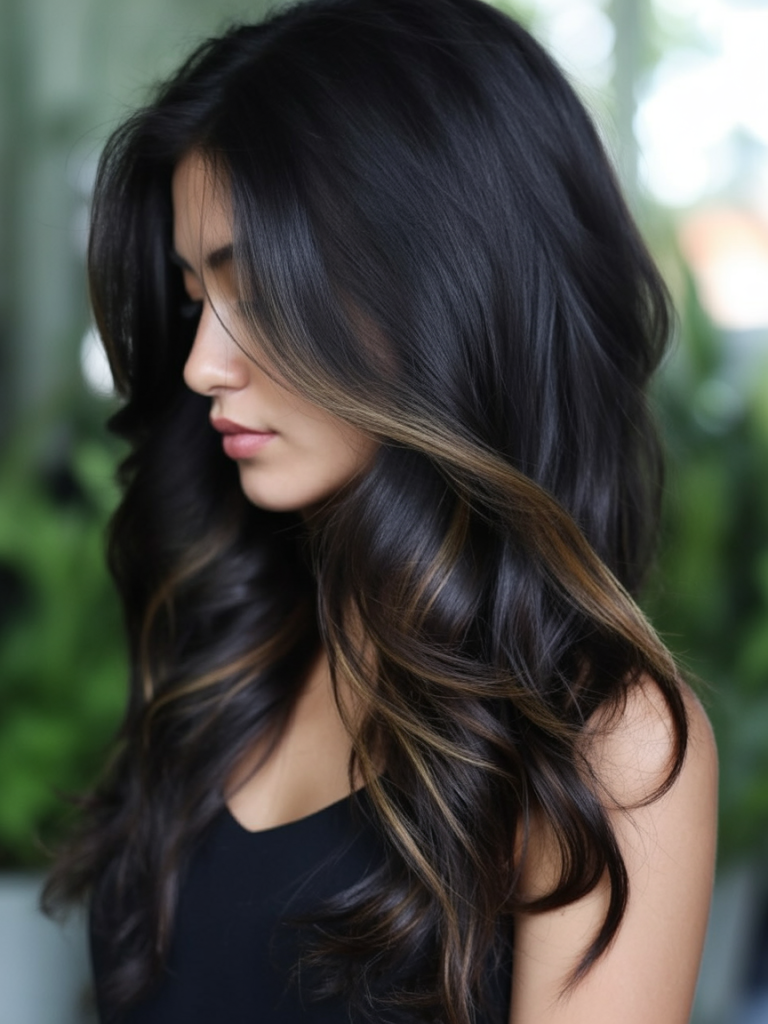 9. Balayage on jet black hair
