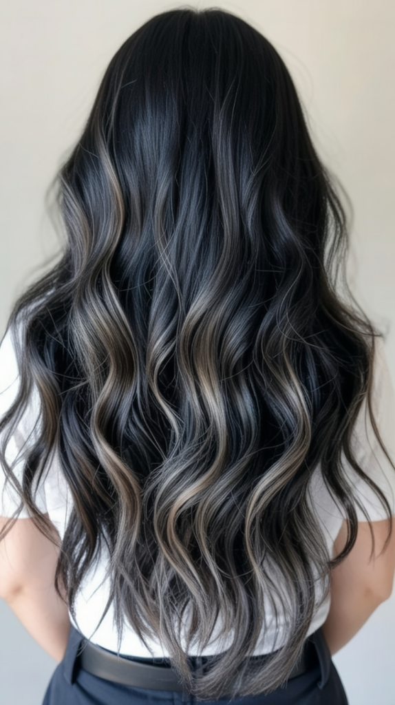 This color mix combines a natural black base with dull ash brown stripes that give the look an elegant coolness. It’s a great choice for brunettes who want something soft but cool at the same time. The ash tones add a sophisticated finish that complements almost any skin tone, making it a year-round favorite for spring or for winter.
