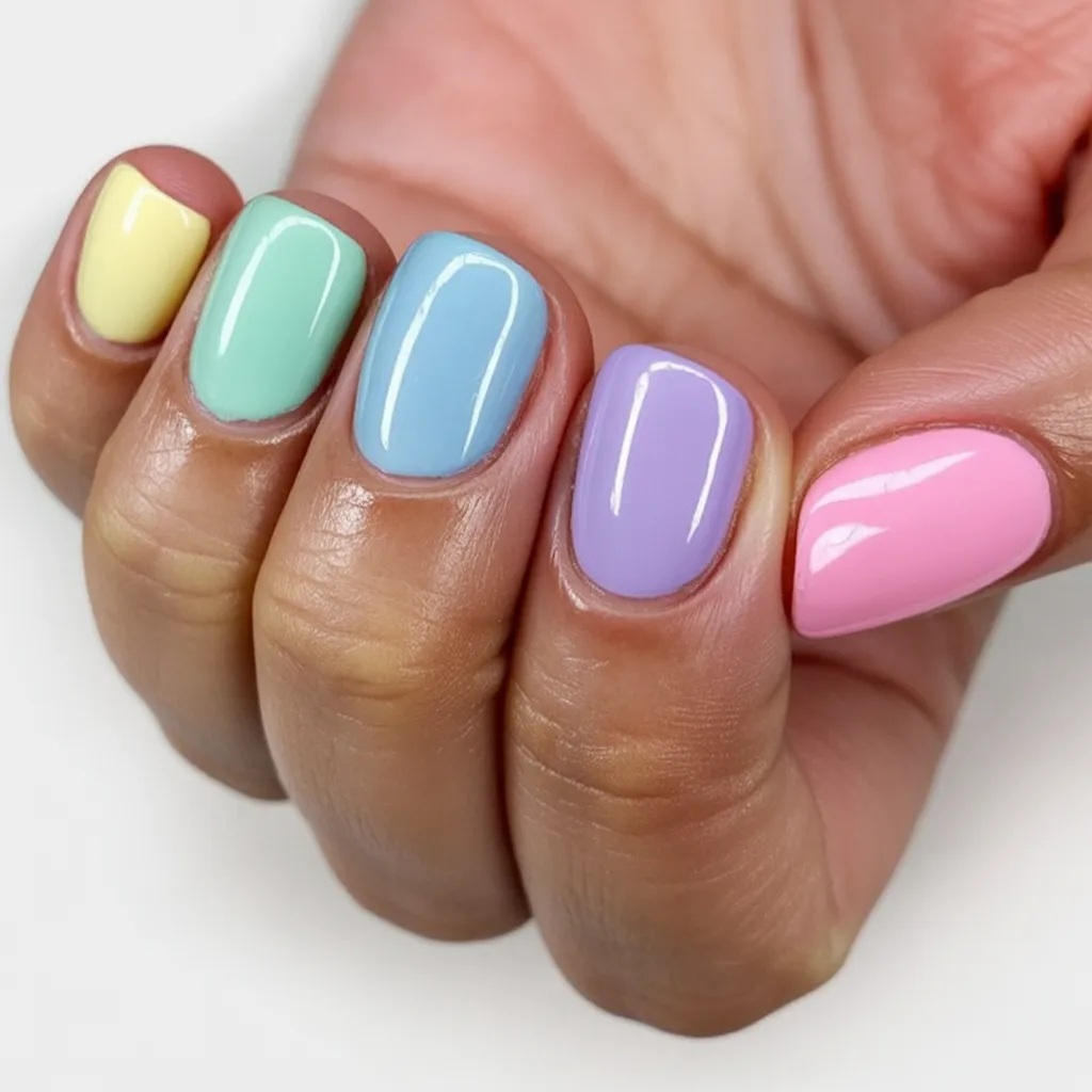 Sometimes you just want color therapy, and this glossy Pastel lineup delivers exactly that. Soft yellow, green, blue, lavender, and pink sit side by side like the prettiest row of Easter candies. It feels clean, optimistic, and quietly confident—no bunnies required.
