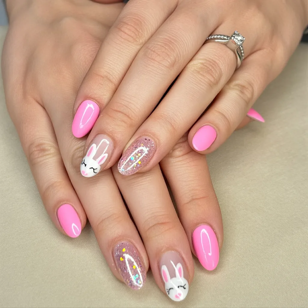 Okay, this one is pure Fun. Bright pink mixed with glitter and playful bunny faces feels energetic and bold in the best way. It’s girly, yes—but in a confident, “I love color, and I’m not apologizing for it” kind of way. The shimmer catches the light and makes the whole look feel celebratory.