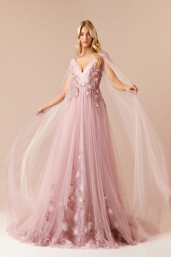Dreamy blush tones and delicate floral embroidery make this ethereal wedding dress romantic boho a true standout. The flowing tulle and elegant V-neckline evoke a sense of tender love and enduring passion.