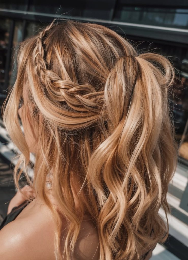 It is a beauty of the black woman braids, but also ideal to look whimsical by a blonde or brunette. Works best on shoulder length to medium length hair. A textured cream and use hidden bobby pins to have a hold the whole day but without the crunch.