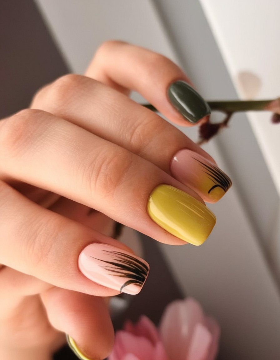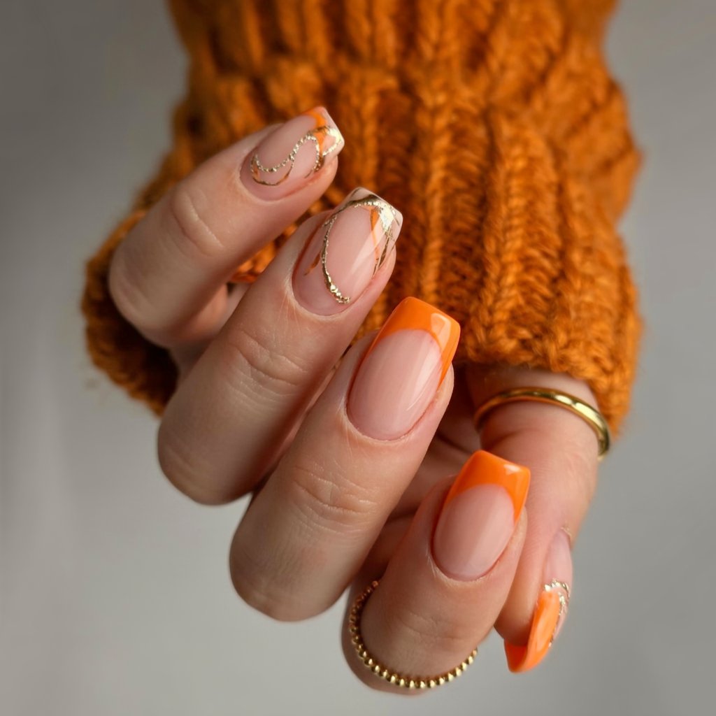 This look is designed to suit short nails or it may be worn in round or soft square shape. It would be ideal in case you love warm orange and yellow colors and need something that will impress and be wearable during the day and night.