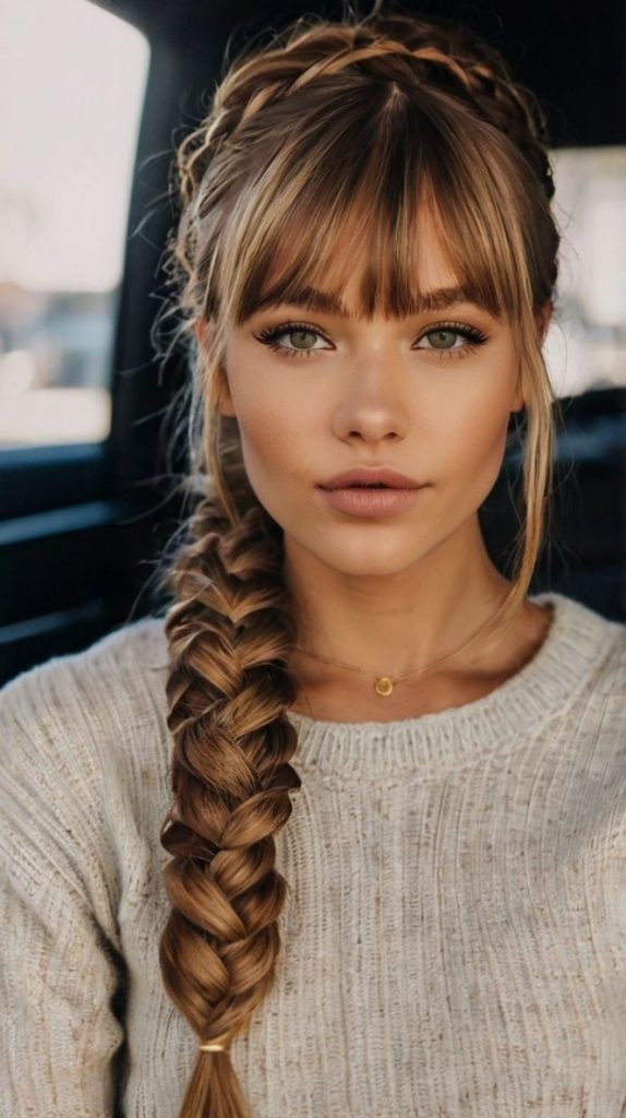 To create this look, part the hair down the center and braid each side using a traditional French braid technique. Allow the front layers to fall naturally, or curl them slightly for added dimension. This hairstyle looks especially beautiful on shoulder-length hair and pairs well with cozy sweaters and casual outfits.