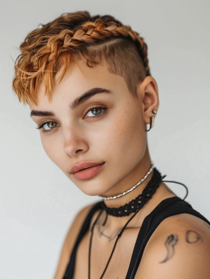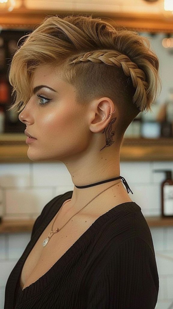 To recreate this look, braid the top section of your hair into a French braid, leaving the shaved sides visible. Finish with a touch of wax for added texture. This look is perfect for short hair and makes a statement at concerts, festivals, or casual outings.