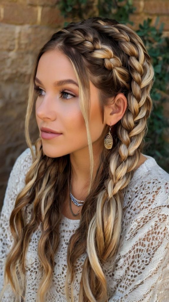 Half-Up French Braids with Loose Waves