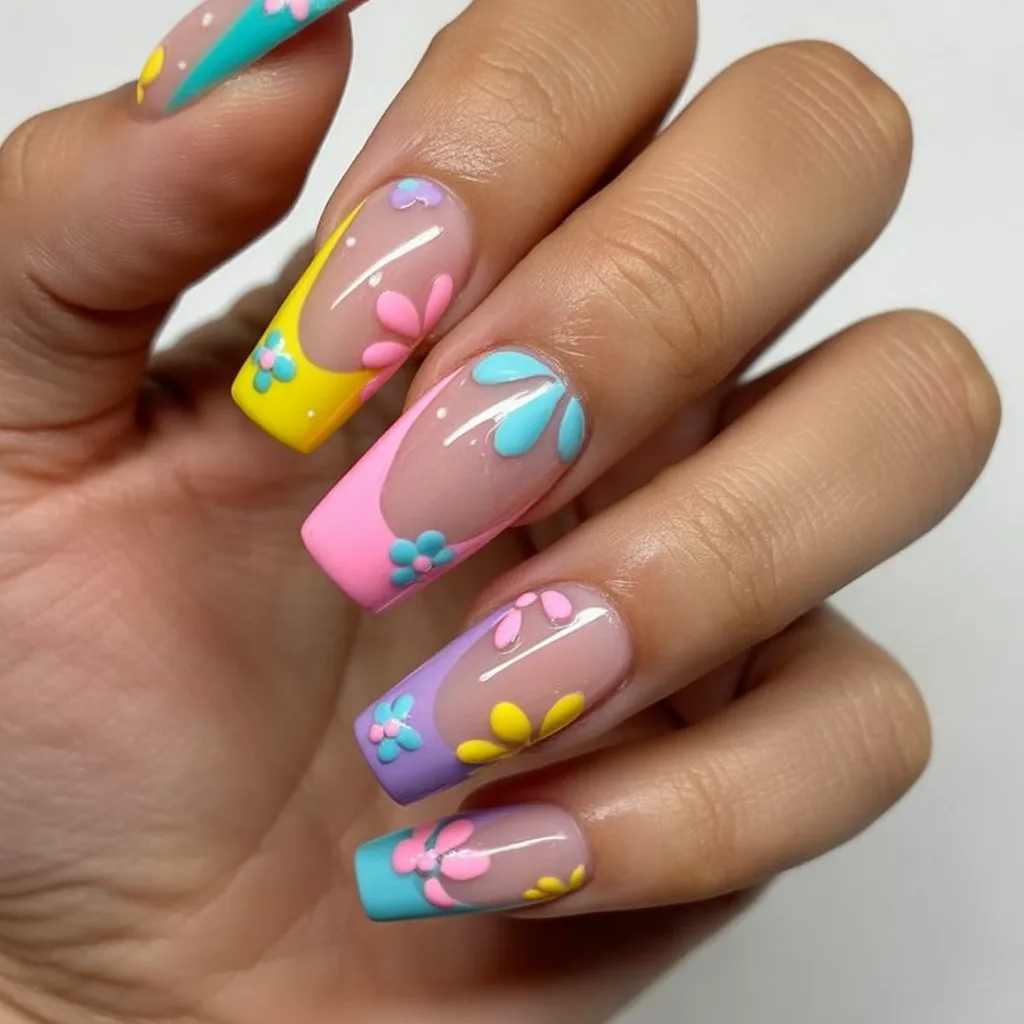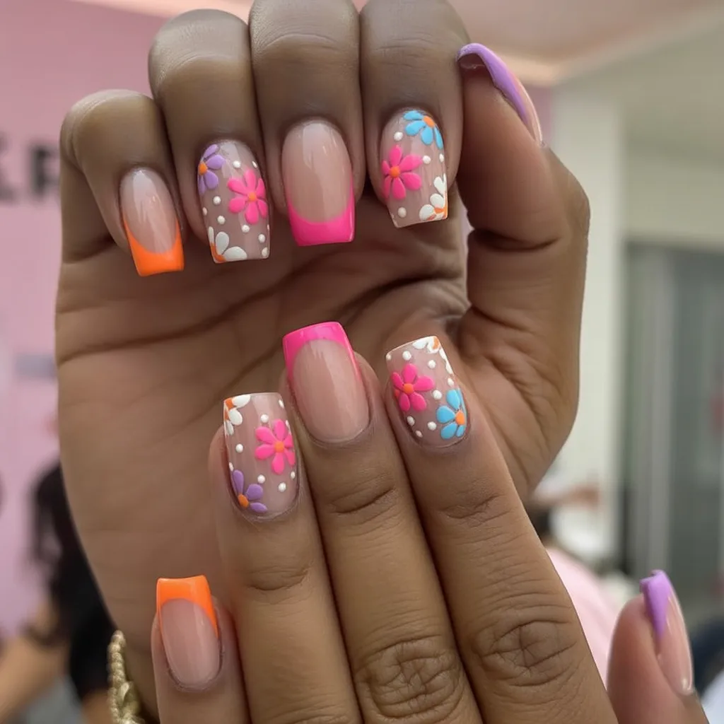 8. Colorful Floral Square Tips