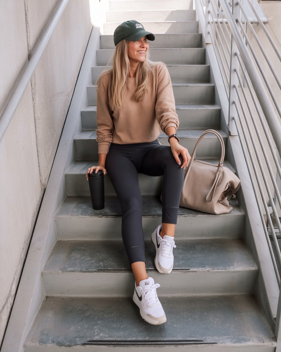 This outfit feels like the grown-up version of athleisure we all needed. It has that “I care, but not too much” energy that makes you feel instantly put together. The muted tones add a calm, polished vibe that works beautifully for spring, especially when you want something casual that still feels intentional and flattering.