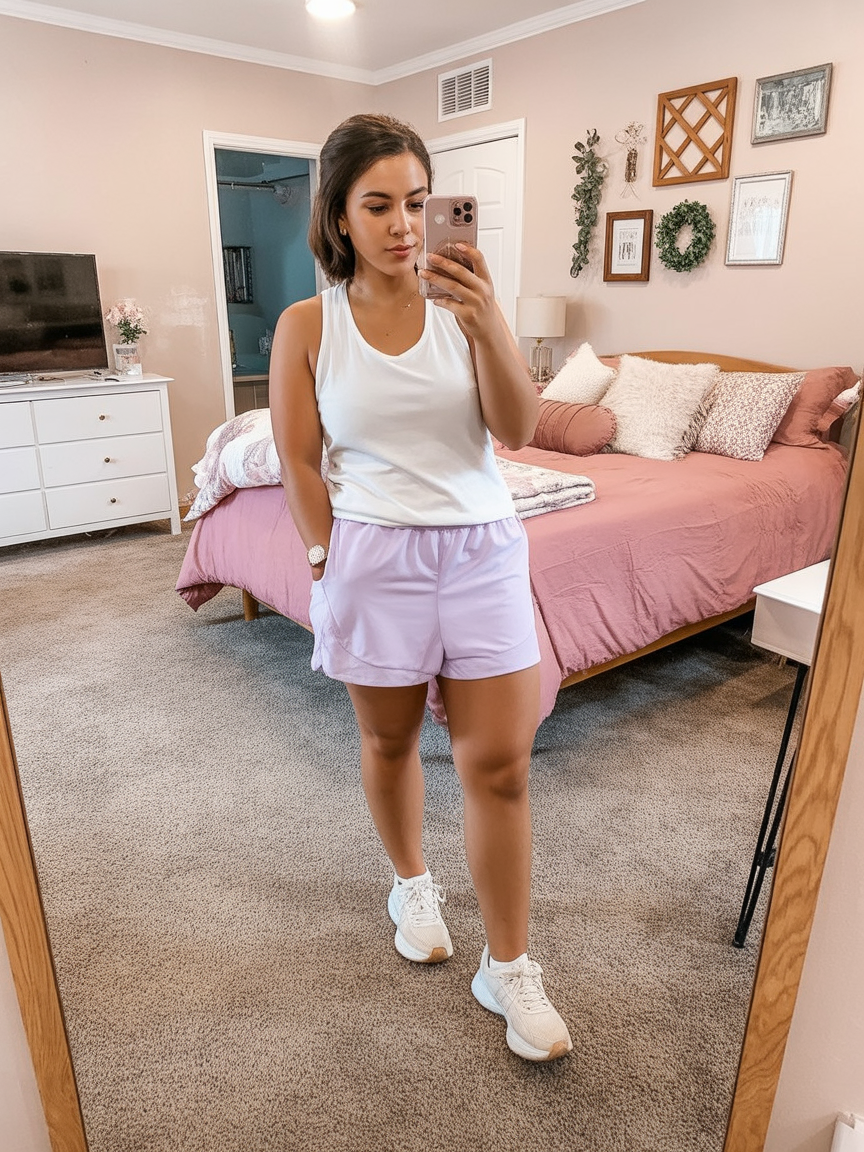 1. Soft Pastel Lounge Shorts with a Clean Tank