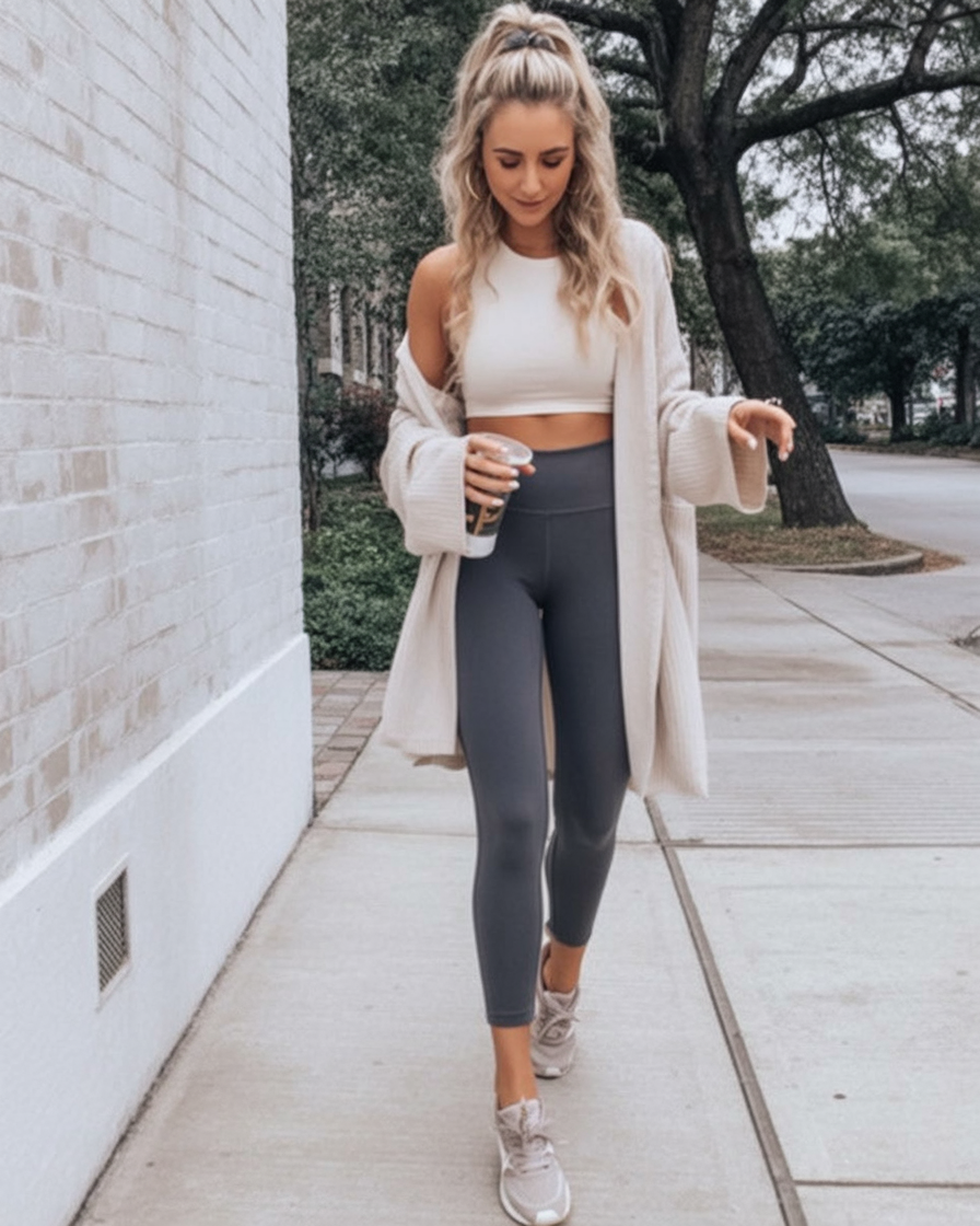 If you’re looking for motivation to refresh your athleisure wardrobe, this is a great place to start. The leggings are easy and flattering, while the cardigan adds versatility. It’s a timeless combination that works beautifully in 2026 for everyday life.