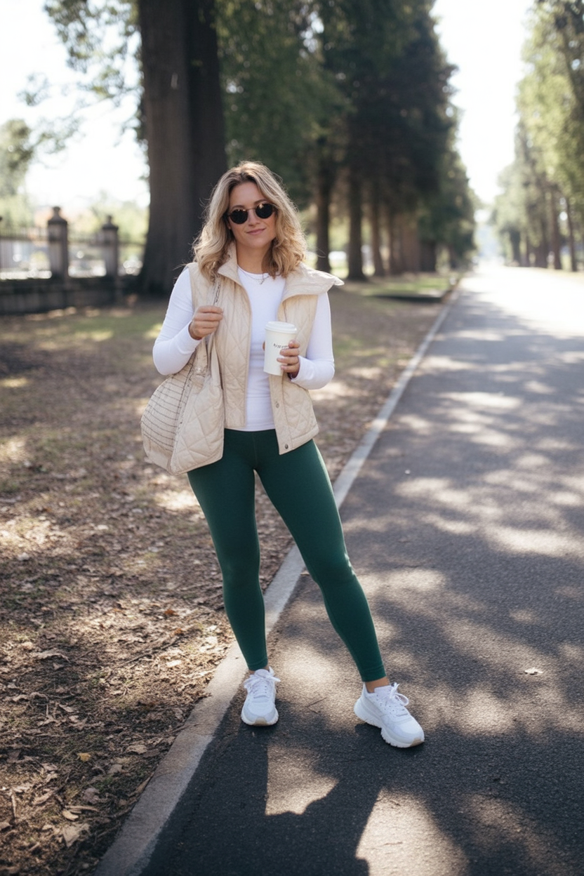 16. Outdoor Walk Leggings with a Light Vest Layer
