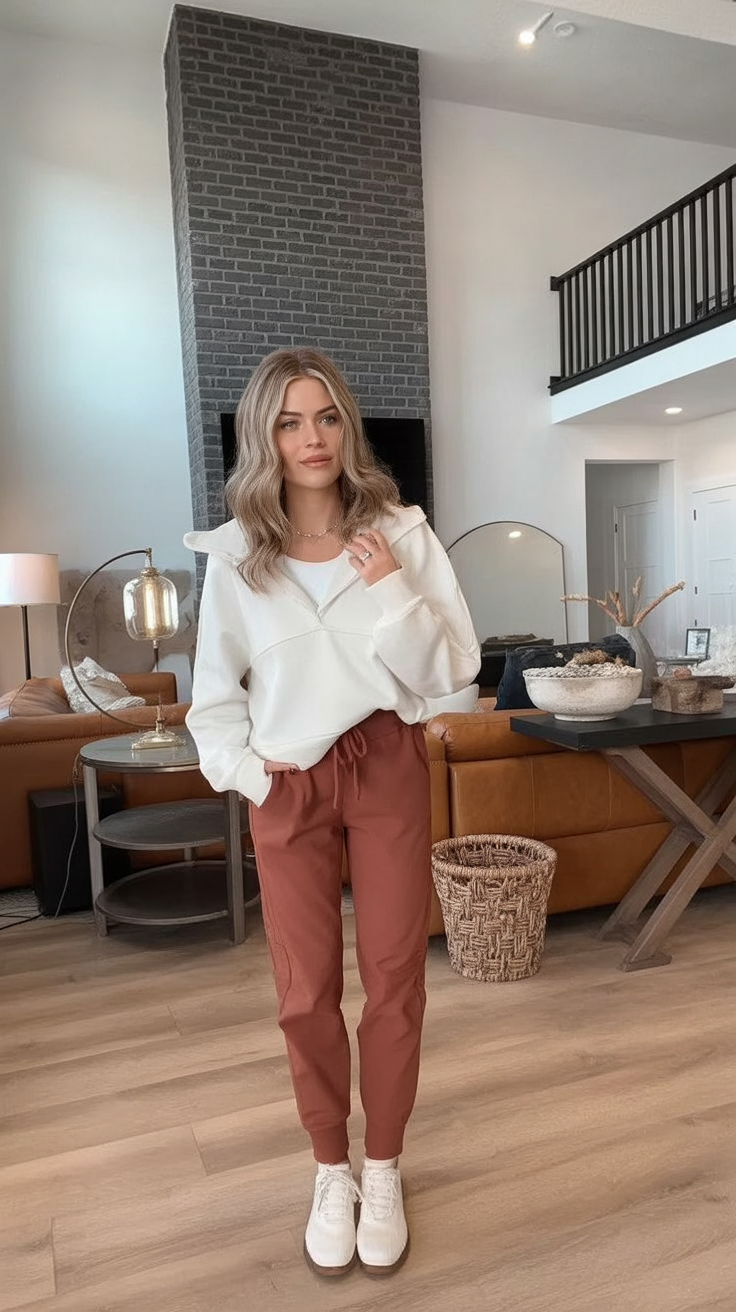 18. Warm-Tone Joggers with a Relaxed Half-Zip