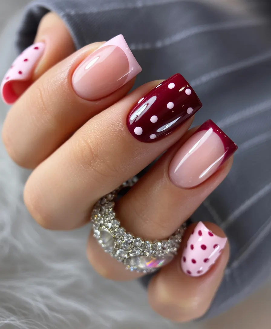 13. Burgundy and Pink Polka Mix