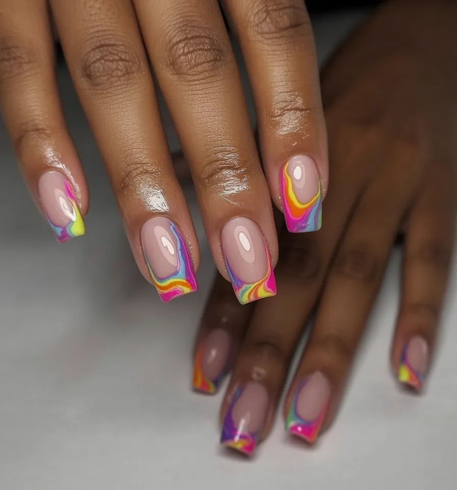 11. Neon Rainbow Swirl Tips