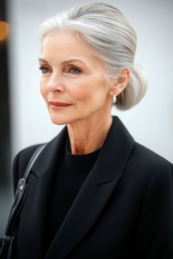 To achieve this look, smooth your hair with a flat iron, gather it into a low ponytail, and twist it into a chignon. Secure with bobby pins and finish with a shine-enhancing hairspray. This hairstyle pairs beautifully with tailored outfits and minimalist accessories.