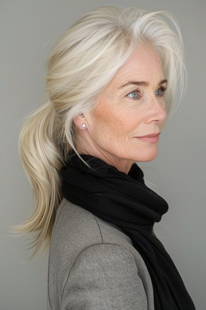 To style, blow-dry with a round brush for volume and smoothness. Add a touch of texturizing spray for a more lived-in look. This hairstyle is sophisticated yet easy to maintain, making it a popular choice for women over 60.