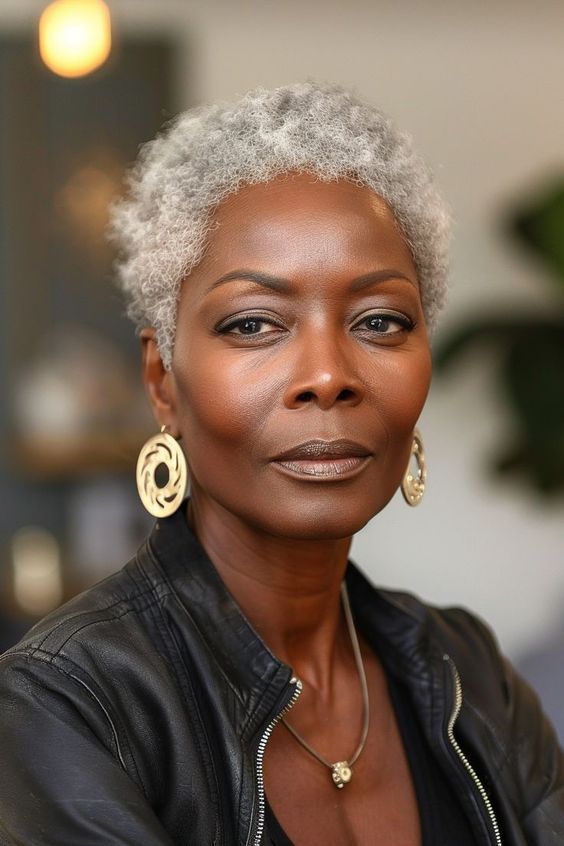 The tapered afro with silver highlights is a bold and empowering hairstyle for 2025. This style embraces natural texture while adding a touch of modernity with its tapered sides and defined curls.
