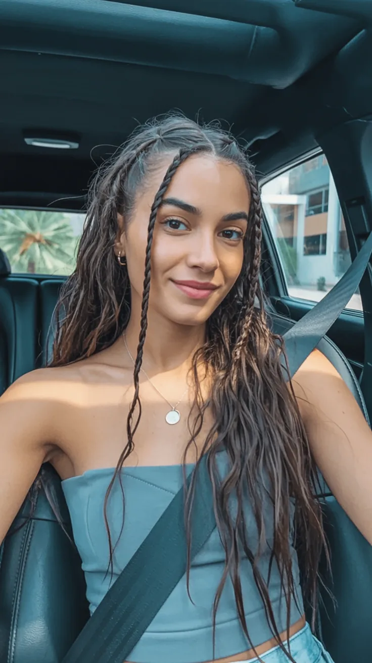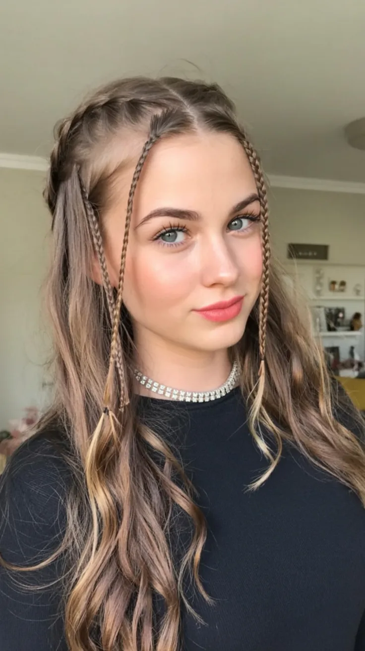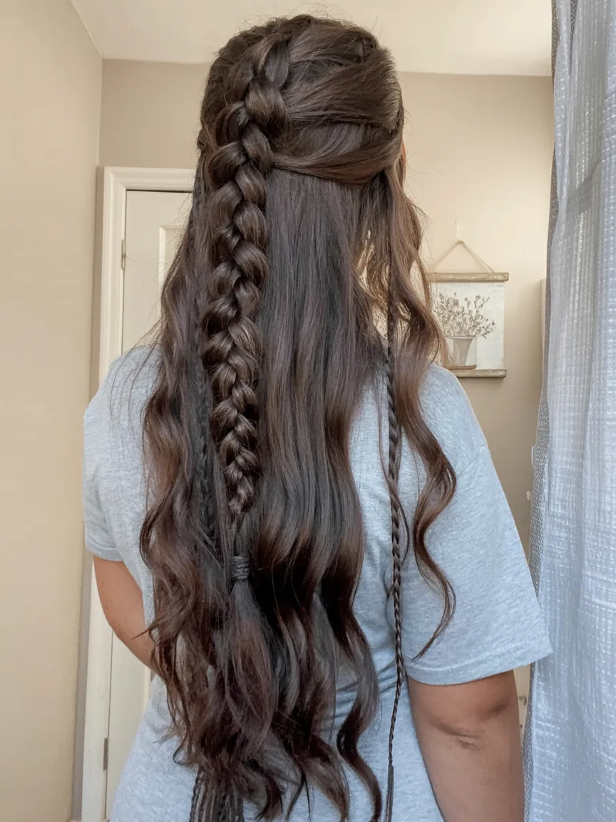 This is one of those easy ideas that works beautifully on long hair with a little natural texture, especially if you like styles that do not need constant checking in the mirror. It is great for Straight strands that need more detail, but it also looks lovely on natural hair with a soft wave or with light and curls through the lengths. A little texturizing cream or curl balm helps the loose pieces stay polished while the braids keep the front controlled. If you want a simple update for School, errands, or a low-key weekend, this style gives you shape without requiring a full styling session. It is especially nice if you love braid details but still want most of your length to stay free and feminine.