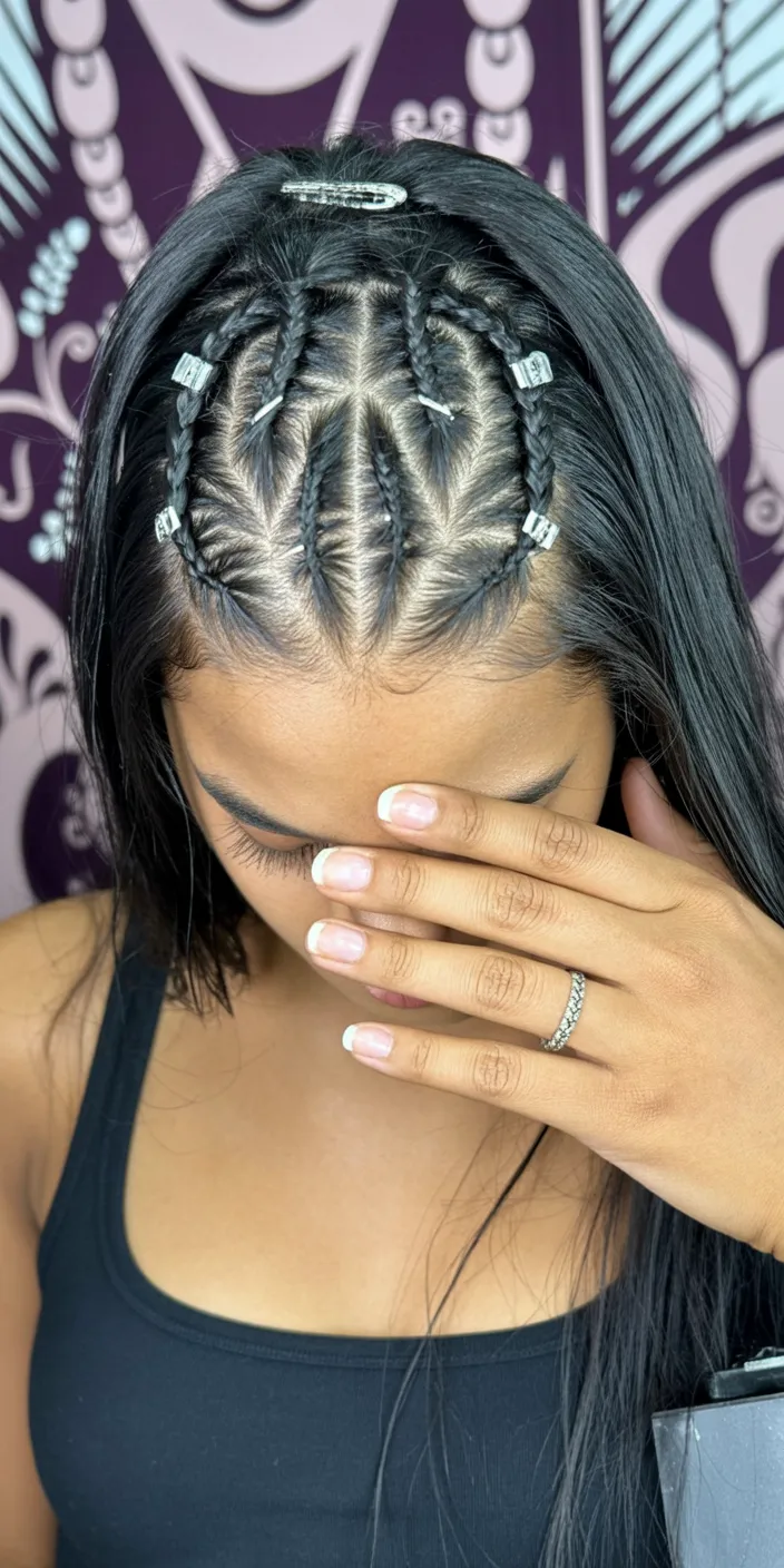 What makes this one special is how it creates drama without needing a full head of braids. It works best on Straight or blown-out Hair because the contrast between the smooth lengths and raised braid pattern really shows up, but it can also be created with a Sew in or Quick weave if you want extra fullness or length. A strong edge control and a shine spray will help keep everything sleek, while careful sectioning is what gives the pattern its clean finish. This is a smart option for Formal plans, a night out, or even Prom if you want something graphic and memorable. It feels modern, a little Baddie curly in spirit, and very 2026.