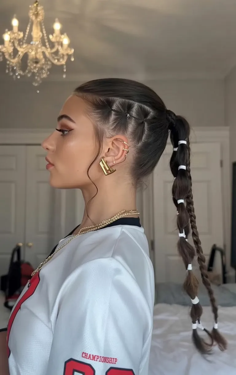 If you want a style that reads polished from morning to night, this is a strong contender. It suits Straight hair best, or Hair that can be smoothed easily before braiding. The slicked-back finish makes it especially flattering when you want to highlight cheekbones, earrings, or makeup, and the segmented ponytail adds interest without much extra maintenance once it is secured. This would be perfect for School events, nights out, casual content days, or even a more relaxed Formal setting if styled with the right outfit. It gives that confident, can-do vibe that makes even a basic outfit feel cooler.