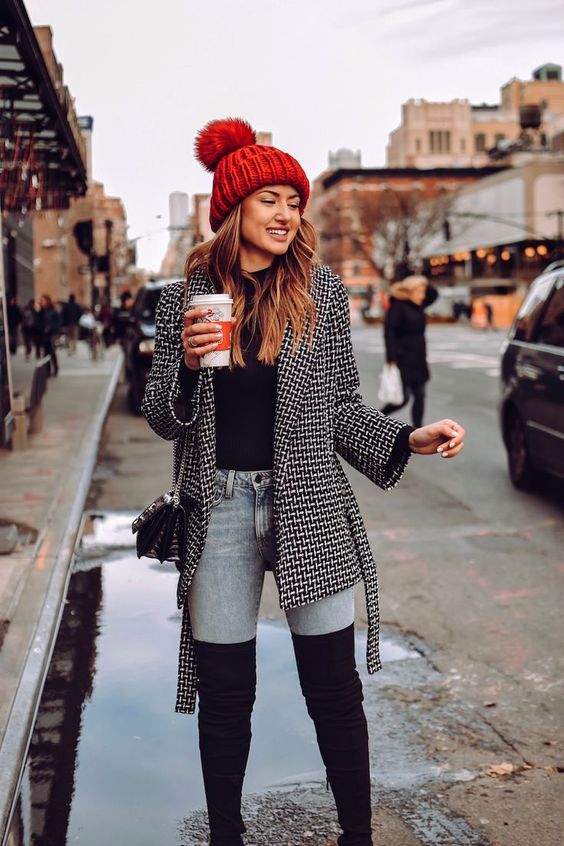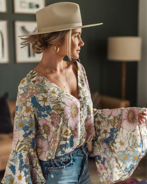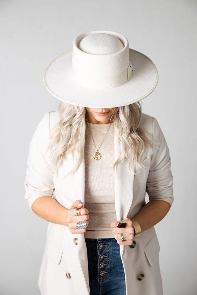 Spring calls for pastel shades and floral patterns. Match a soft-hued hat with a light jacket and jeans for a fresh hat outfit spring.