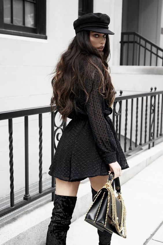 For a night out, a hat can add a touch of glamour to your outfit. Opt for a sleek, small-brimmed hat, perhaps with a bit of sparkle or a feather accent. Pair it with a cocktail dress or a chic jumpsuit for an elegant evening look. This hat outfit idea combines style with sophistication, perfect for a dinner date or an evening event.