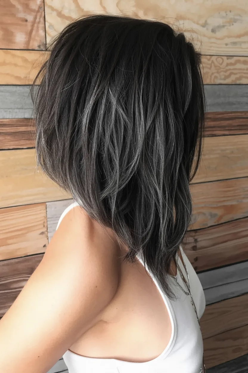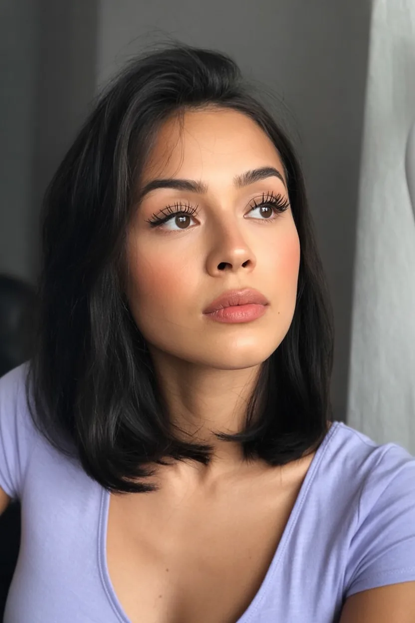 This cut feels like the easygoing cousin of a classic lob, but with a little more movement, a little more softness, and a lot more personality. The shape skims the shoulders in that pretty, not-too-done way, while the airy ends keep everything light and touchable. It has that relaxed, salon-fresh look that says you care about style, just not in a try-hard way. I love how this kind of long bob makes dark hair feel dimensional, even without dramatic color, because all that movement catches the light so beautifully. It’s feminine, current, and just undone enough to feel youthful without chasing trends too hard.