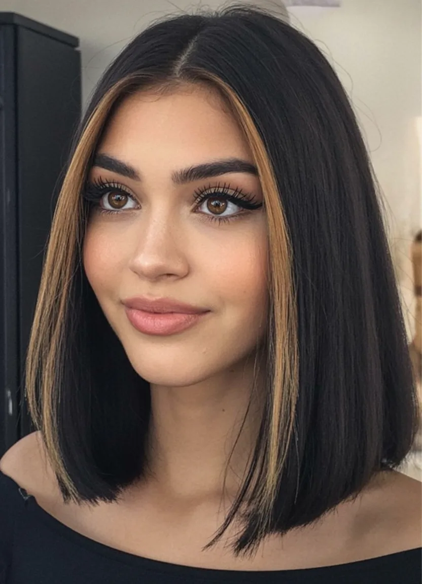 This is a lovely choice for women who want a modern update without losing the elegance of a long straight bob. The color placement works beautifully around a round face or Oval face because it draws the eye vertically and helps frame the face in a flattering way. Style it smooth with a center part and a touch of shine serum so the contrast really shows. What makes this cut special is how it combines a timeless shape with a subtle statement. It’s polished, pretty, and perfectly in step with 2026 trends.