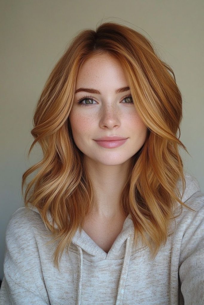 This hairstyle embodies French-inspired elegance with its soft, face-framing layers and middle part. It’s a flattering option for fine hair, as the layers create an illusion of fullness. The honey-blonde tones add warmth, making it perfect for those with fair to medium skin tones.