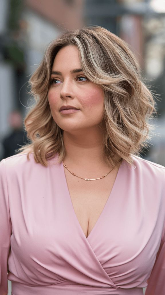 Highlighted layers bring life and dimension to this shoulder-length cut. The soft waves add elegance, making it a go-to for formal occasions or everyday wear. The style complements round faces and works beautifully for fine hair, adding an illusion of thickness.
