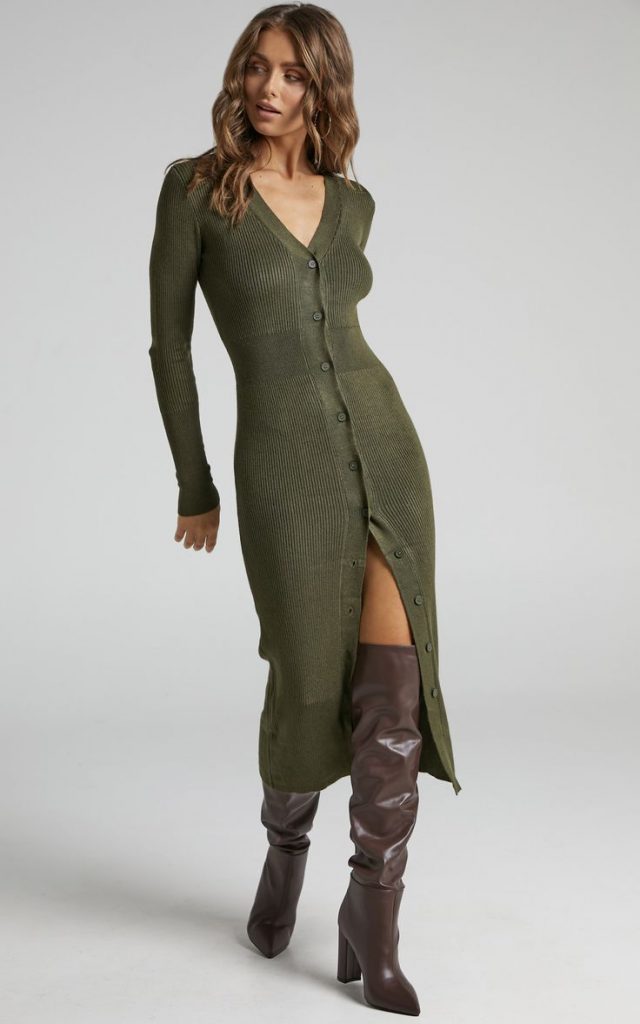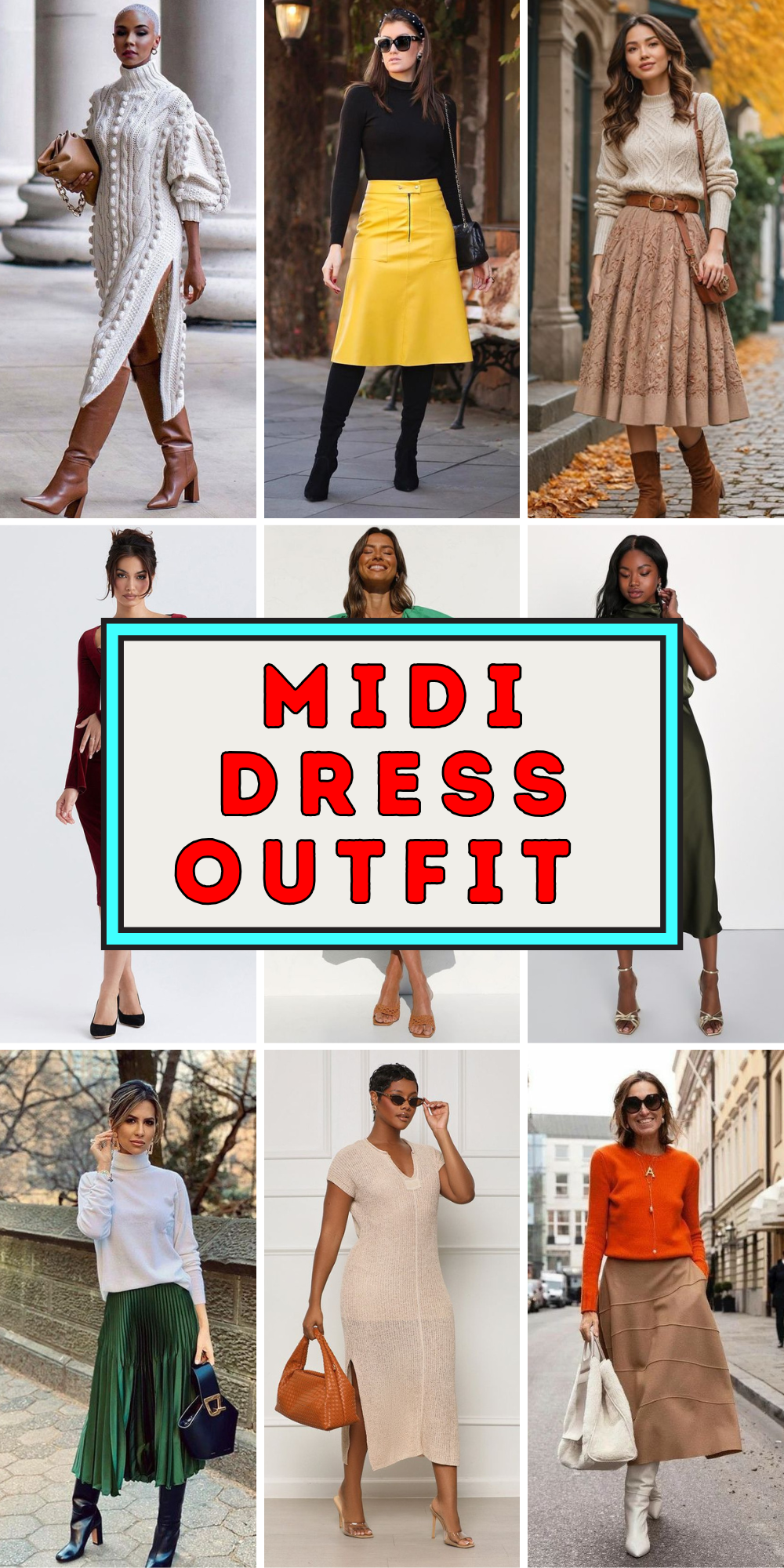 The Midi Dress Outfit Fall trend is all about layering. Pair your dress with a cardigan or blazer and boots for a quintessential autumn look.