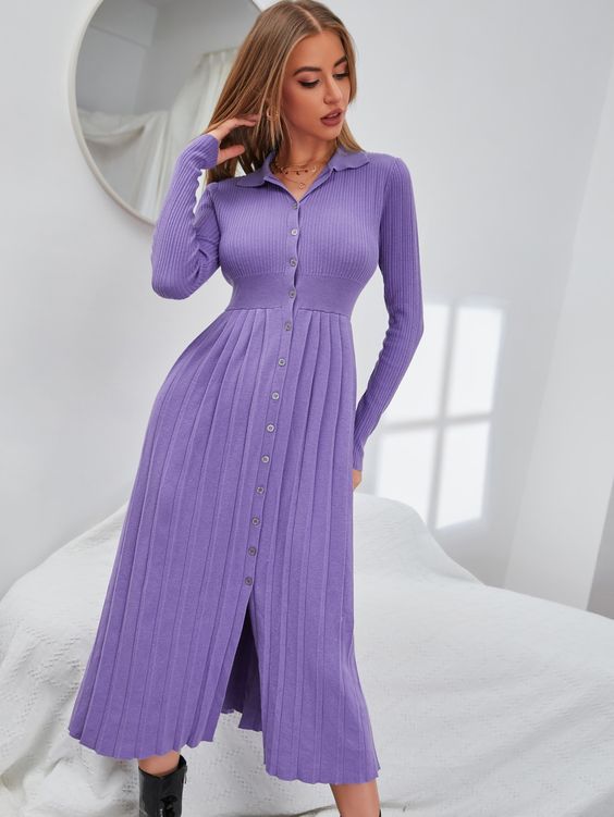 Combat the cold in style with a Midi Dress Outfit Winter edition. Layer with a turtleneck, tights, and boots for a cozy yet fashionable outfit.