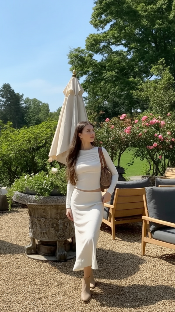 This look feels like a quiet stroll through a sunlit European street, where confidence comes from simplicity. The clean white dress paired with a structured hat carries that unmistakable old money charm—refined, feminine, and completely unbothered by trends. It’s the kind of outfit that feels light on the body but strong in presence, perfect for embracing spring with ease.