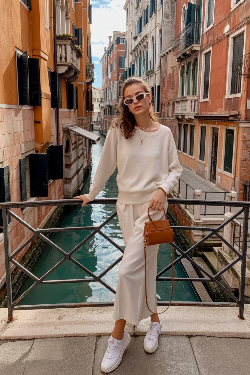 There’s an undeniable elegance in a soft monochrome outfit. This look feels calm, composed, and quietly luxurious—perfect for travel or long spring days on the go. It reflects that old money belief that comfort and style don’t need to compete.