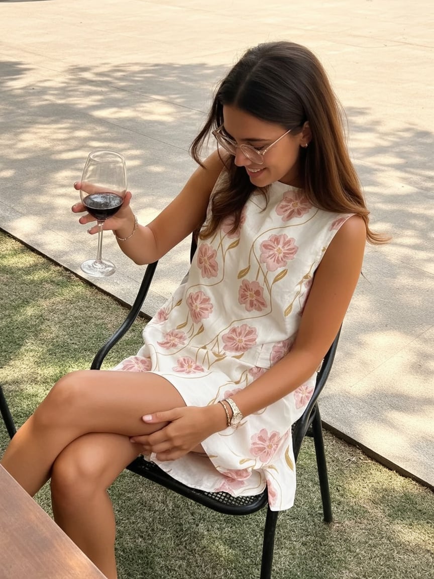 This floral dress feels light, relaxed, and quietly romantic. It’s the kind of piece that makes spring evenings feel a little more special without trying too hard. The overall mood is soft and feminine, perfect for slow dinners, garden gatherings, or casual celebrations.