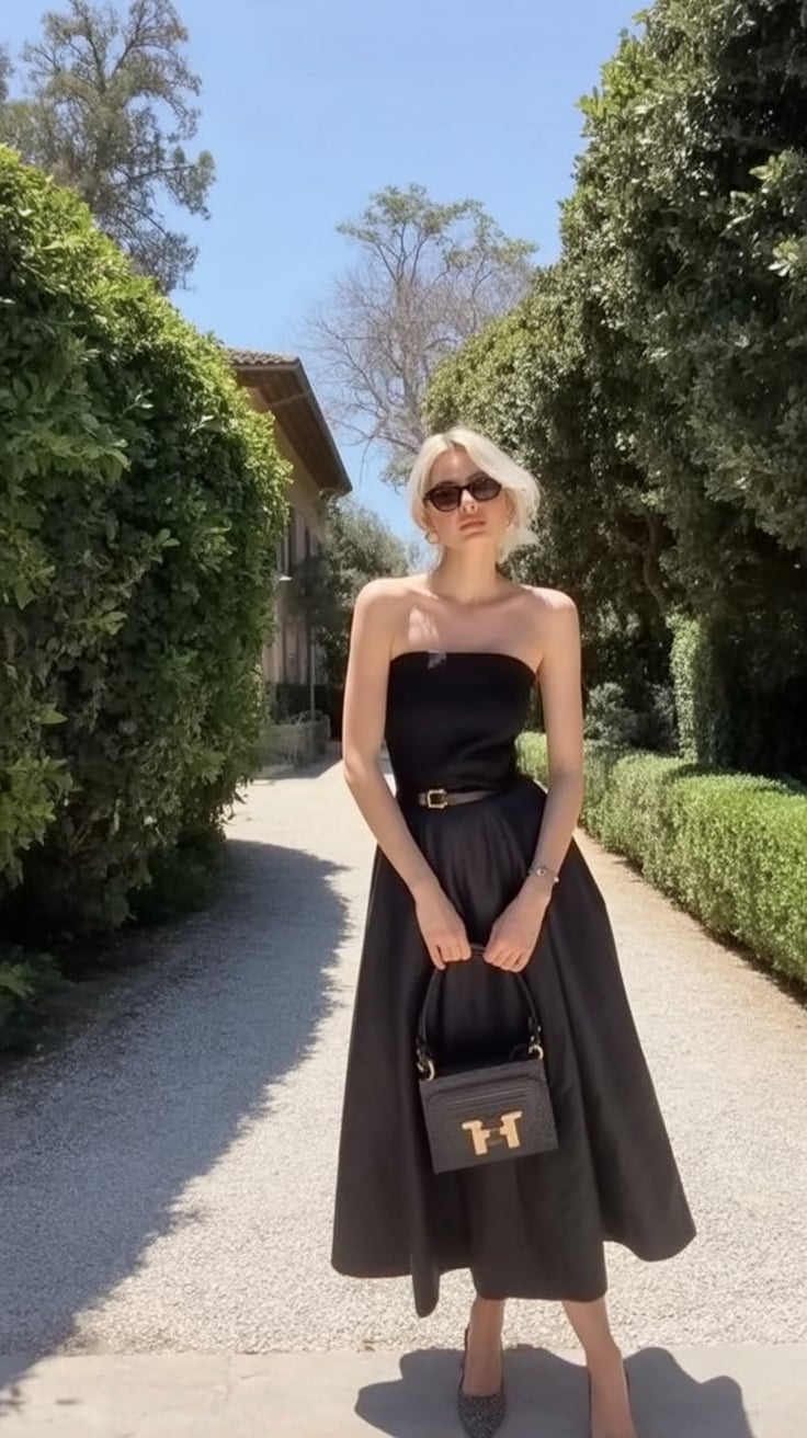 There’s something undeniably powerful about a simple black dress worn with confidence. This look feels classic, elegant, and quietly dramatic—never loud, never trying too hard. It’s a reminder that old-money style often lives in restraint.