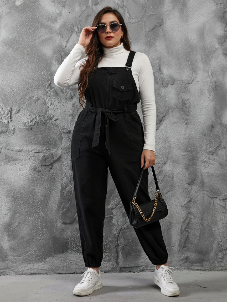 15. Belted Black Overalls With City-Chic Energy