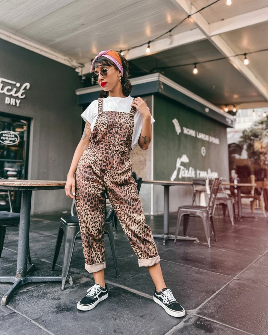 3. Street-Ready Leopard Overalls With Retro Vibes