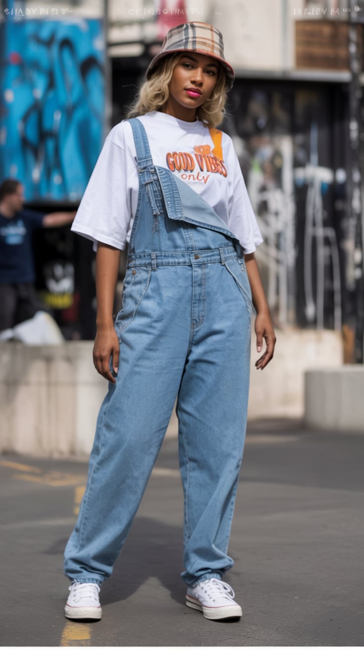 If you crave clothes that work hard without demanding much, this is a wonderfully low-maintenance formula. The baggy denim is forgiving through the hips and thighs, the tee keeps you cool in summer, and sneakers make it all-day wearable. Toss on a coat and scarf for winter, and it still works. Overalls like these are the kind of piece you’ll grab on days when you “have nothing to wear” and somehow still walk out the door looking intentionally styled.
