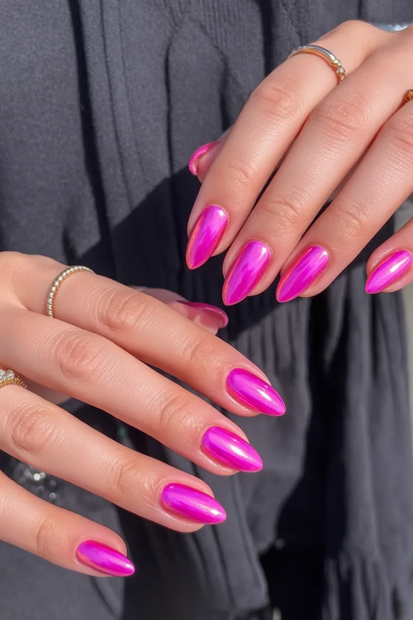 These nails are all about confidence and clarity. The metallic pink finish catches the light beautifully, creating a clean, powerful statement without extra decoration. It feels modern, intentional, and refreshingly uncomplicated—perfect for women who love simplicity with impact.