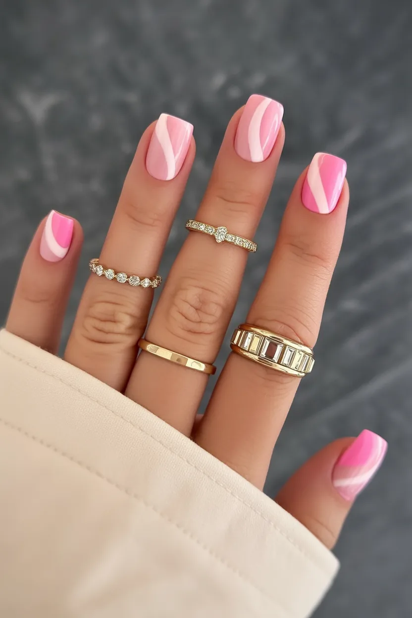9. Soft Pink Square Nails with Modern Swirls