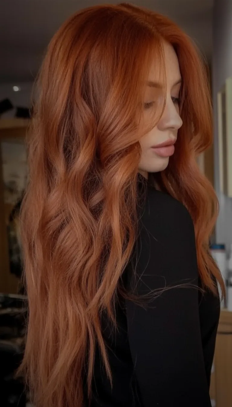 Low-maintenance angle: choose a Ginger that leans Copper rather than neon orange, and it’ll fade more gracefully. Long layers help prevent heaviness and make air-drying look intentional. For easy styling, scrunch in a wave spray, braid it overnight, and shake it out in the morning. A gloss every 6–8 weeks keeps it shiny, and a UV protectant helps this Bright warmth stay consistent.