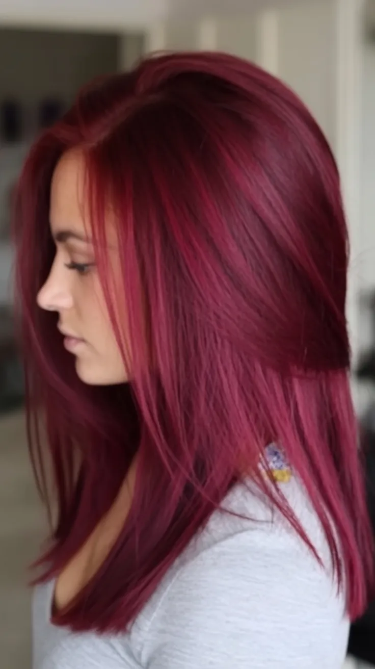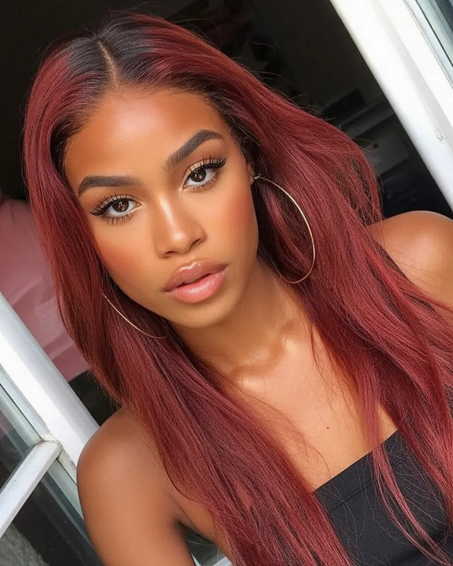 The vibe here is confident and sleek, so keep styling clean and glossy. This color looks incredible on straight hair and on silkier textures because shine shows off the depth. Use a heat protectant, flat iron in small sections, and finish with a lightweight serum so the Raspberry tone looks reflective, not dusty. If you’re doing dye, ask your stylist to keep it slightly dark so it stays elegant as it fades. It’s a gorgeous option for women who want color that feels artistic but still wearable.