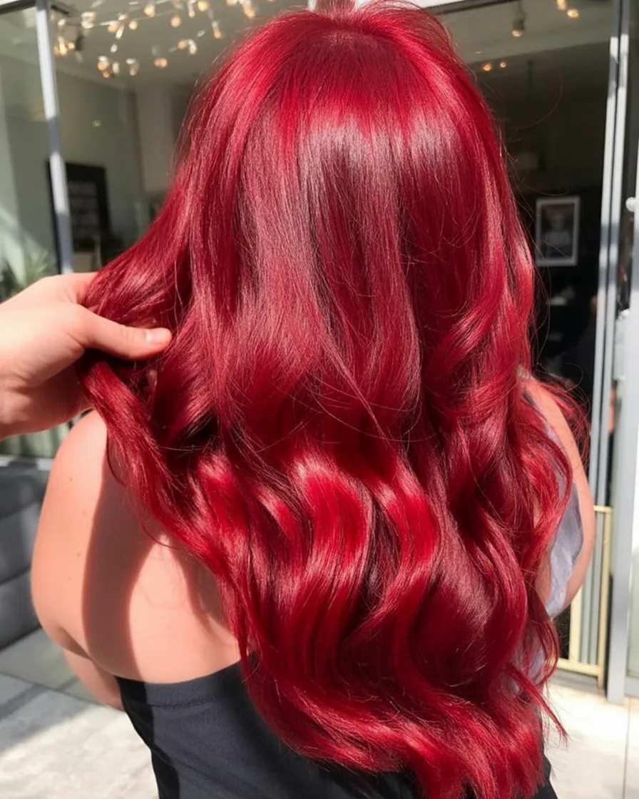 This Fire red is the hair equivalent of walking into a room and instantly feeling like the fun one. It’s bold, juicy, and still surprisingly wearable because the waves soften everything. The color has that Flame quality—bright but not harsh—so it reads playful instead of overpowering.